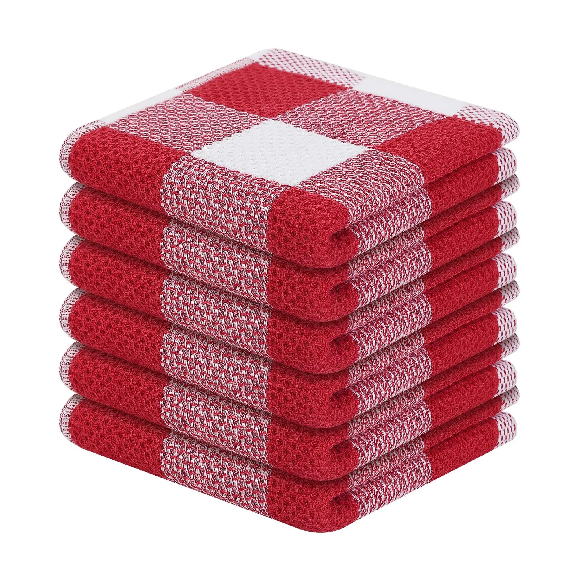 Кухонное полотенце из чистого хлопка, клетчатое полотенце вафельного переплетения, впитывающая ткань, очень мягкая кухонная ткань, домашняя ткань 6pcs красный