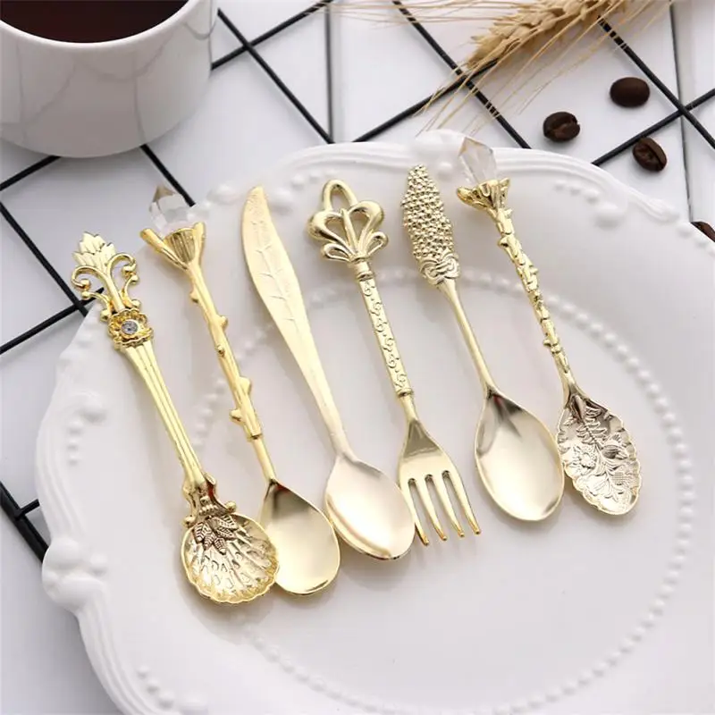 Кухонные столовые приборы, королевская зеркальная вилка, винтажная металлическая резная вилка для кофе, фруктов, десертов, ложка для чая, мо...