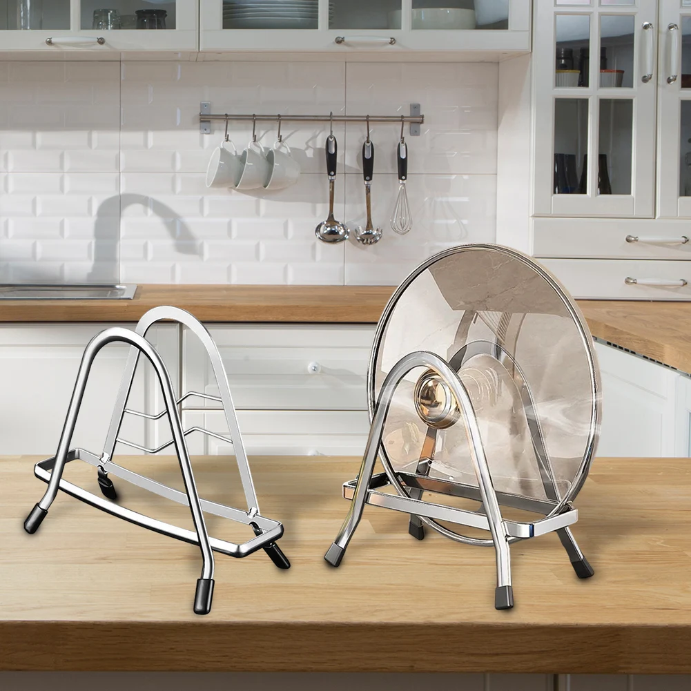 Кухонный органайзер из нержавеющей стали для крышек кастрюль, разделочных досок и тарелок с нескользящими ножками для стабильности