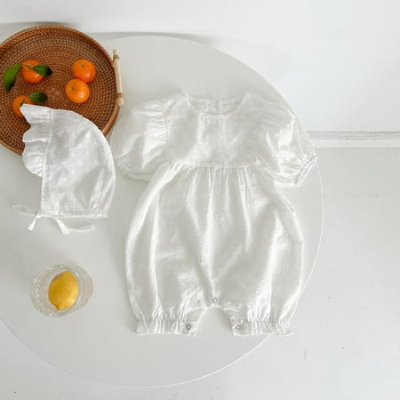 DanceeMangoos 2 Pcs Infant Baby Rompers With Hat Baby Girl Short Sleeve Clothes Jumpsuit Spring Summer Baby Girl Clothes
