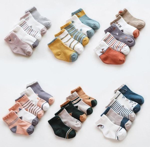 socks 5pairsset lovely cartoon baby for born stripe girl boy cotton infant toddler floor kids sokken3438973, Pink;yellow
