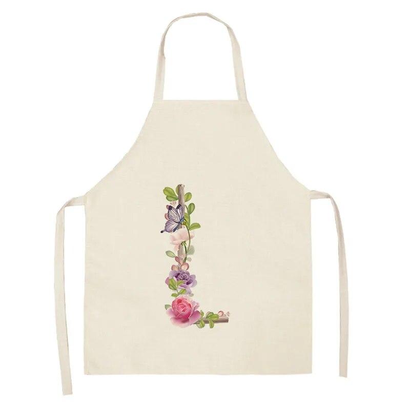 Кухонный фартук с цветочным принтом монограммы Льняной фартук без рукавов Фартук для уборки дома Мужской и женский фартук для шеф-повара Кулинарный фартук-нагрудник 68X55CM