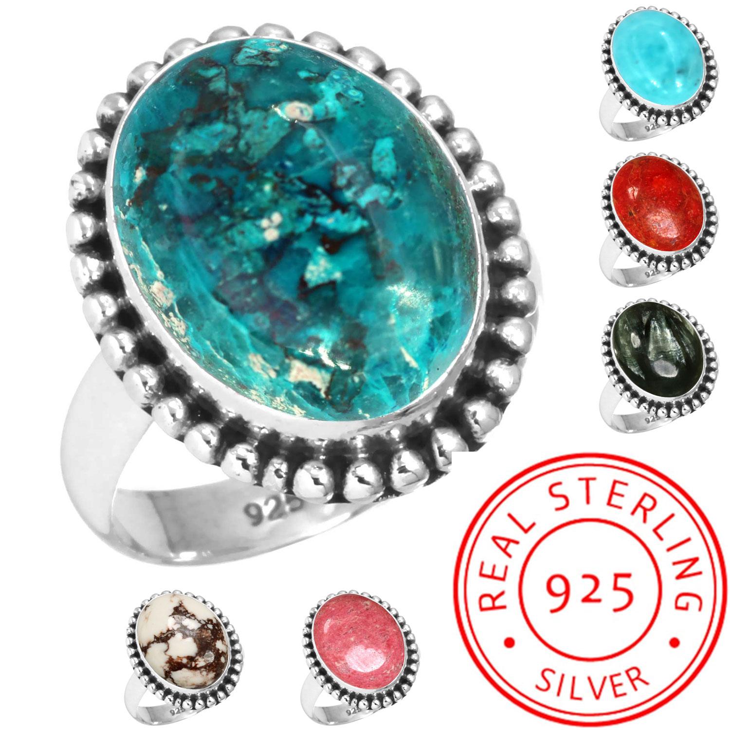 Кільце зі срібла 925 проби Жіноче з дорогоцінним камінням Ручна робота Ювелірні вироби Великодній подарунок Смітсоніт Губчастий корал Серафініт Шаттукіт Туліт Дикий кінь Вінтаж 8.5