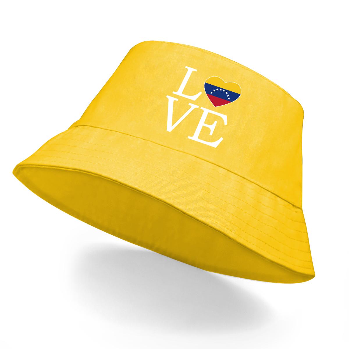 ЛЮБОВЬ Панама с принтом сердца Венесуэлы, Патриотическая шляпа рыбака Весна Однотонная Широкие поля Шляпа-ведро as the picture жёлтый
