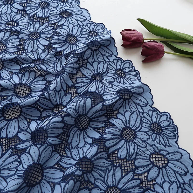 Лазерная вышитая кружевная ткань с подсолнухом для платья, модельерская ткань, ткань для шитья одежды