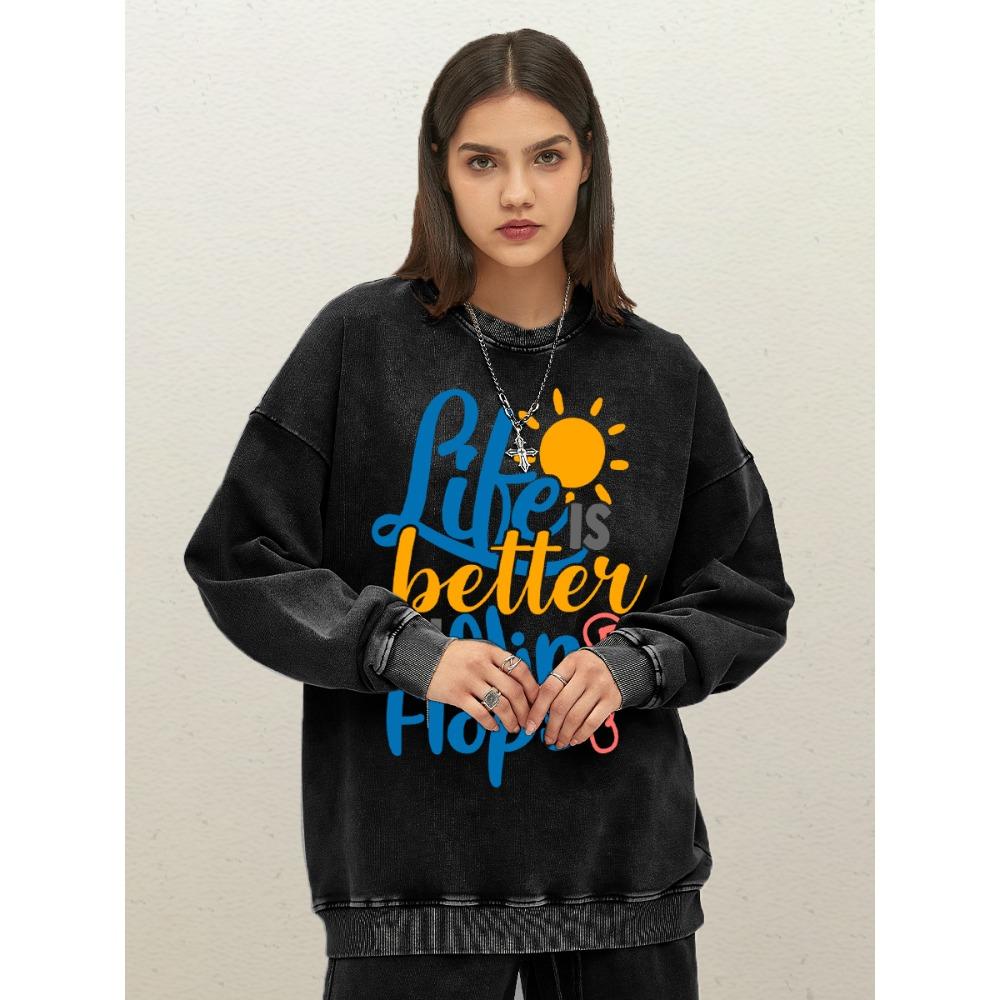 Лайк Лучше Во Вьетнамках Солнечная Печать Женский Свитшот из Стиранного Хлопка Мягкая Осенняя Спортивная Одежда Пуловеры с Круглым Вырезом S
