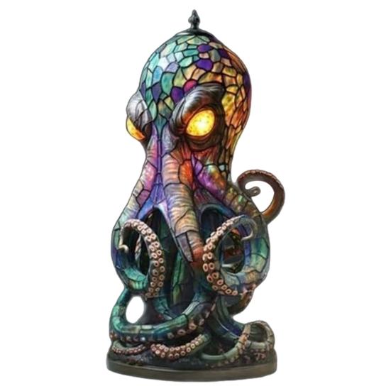 Лампа в виде осьминога, витражный стиль, смоляной ночник в виде осьминога со светящимися глазами, 3D ретро-настольная лампа в виде животного океана для домашнего декора, спальни, офиса 20cm