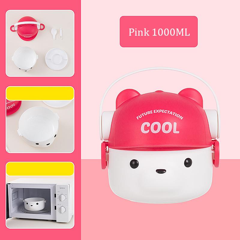 Ланч-бокс для детей с героями мультфильмов, переносной ланч-бокс со столовыми приборами, ланч-бокс в форме медведя с переносным устройством, контейнер для еды, пригодный для использования в микроволновой печи розовый