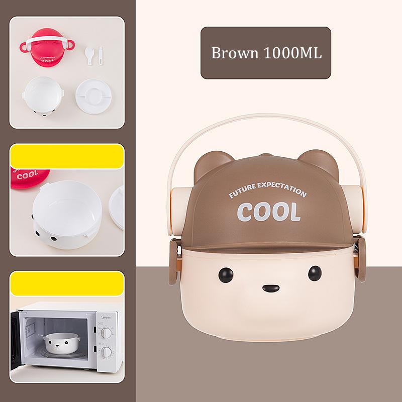 Ланч-бокс для детей с героями мультфильмов, переносной ланч-бокс со столовыми приборами, ланч-бокс в форме медведя с переносным устройством, контейнер для еды, пригодный для использования в микроволновой печи коричневый