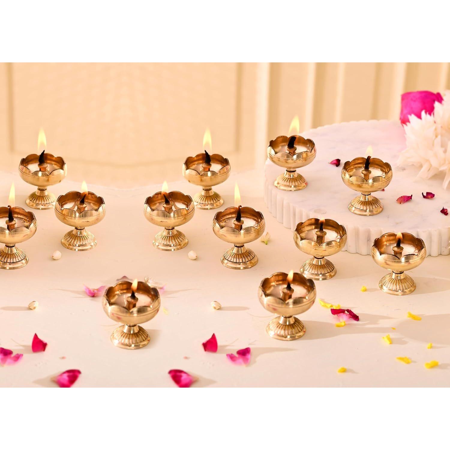 Латунная лампа-дия Лотос для пуджи, набор из 12 штук - лампа-дия в виде цветка лотоса для комнаты для пуджи, храма, мандира, офиса, масляная лампа-дия для украшения дома
