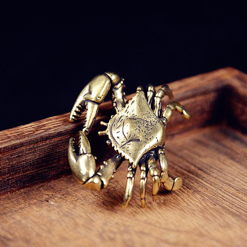 Латунная фигурка краба, Богатый руль в руке, Креативное настольное чайное животное ручной работы, Маленькая фигурка крабового клешня, Антикварное изделие.