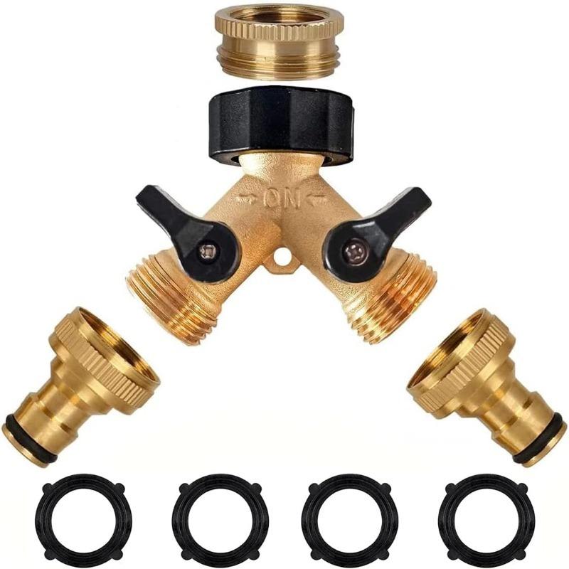 Латунный распределитель для шланга - 1/2 и 3/4 Y-образный распределитель для крана с запорным клапаном, 2-сторонний соединитель для дома, сада, улицы золотой