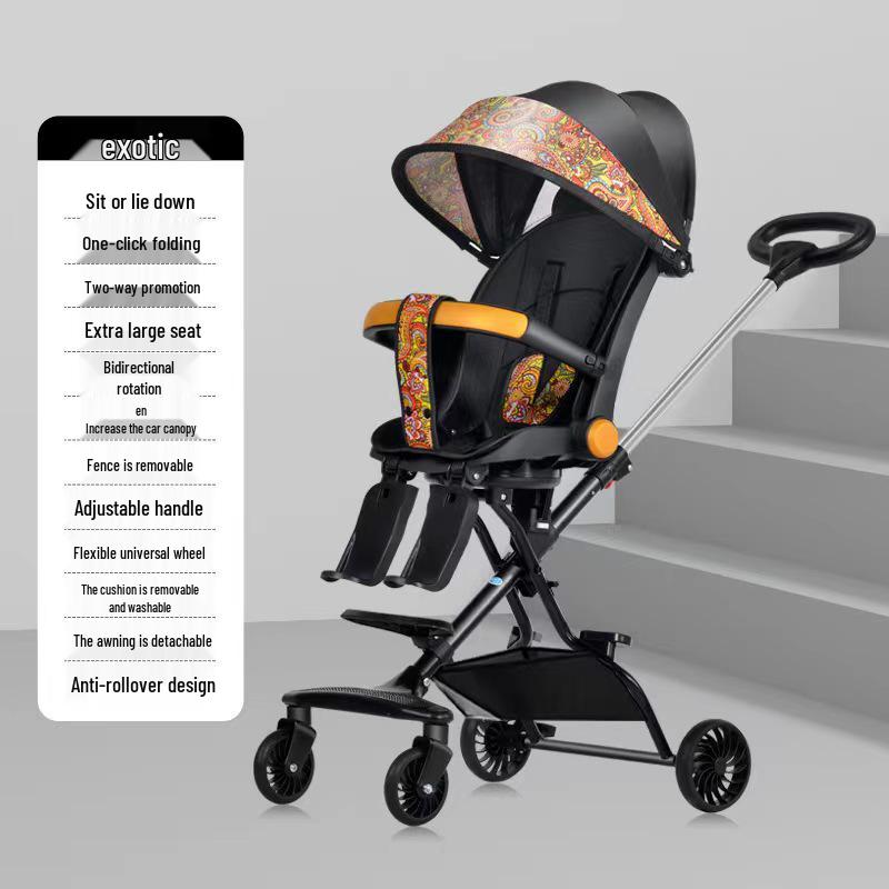 Легкая Складная Двусторонняя Откидная Прогулочная Коляска с Высоким Шасси и Четырьмя Колесами.