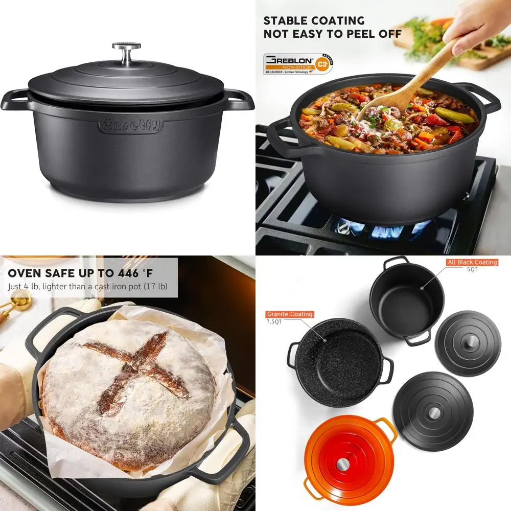 Легкая голландская печь из литого алюминия емкостью 5 литров с крышкой — идеально подходит для выпечки хлеба, тушения и запекания, идеально подходит для использования в духовке