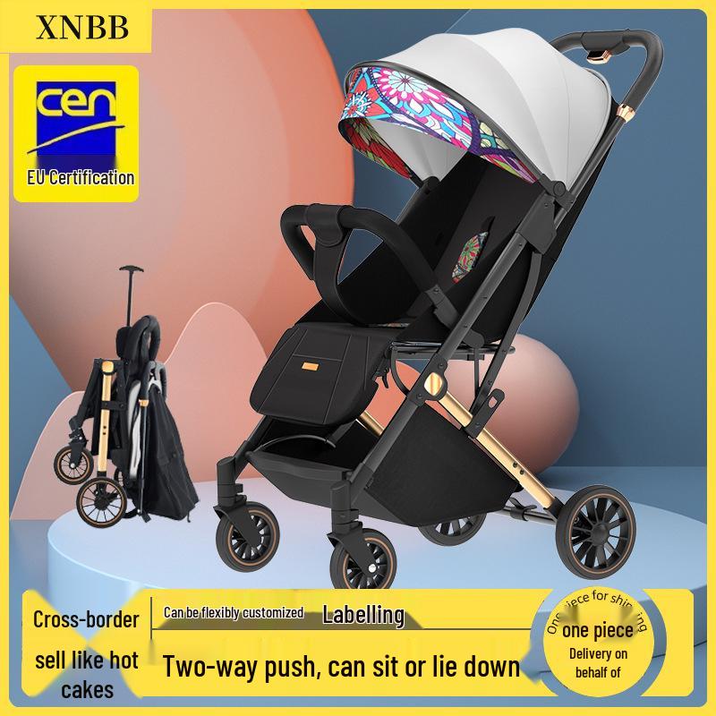 Легкая детская коляска: Сидеть и лежать, Складывание одной кнопкой, Четырехамортизационная подвеска, Уличная коляска-зонт.