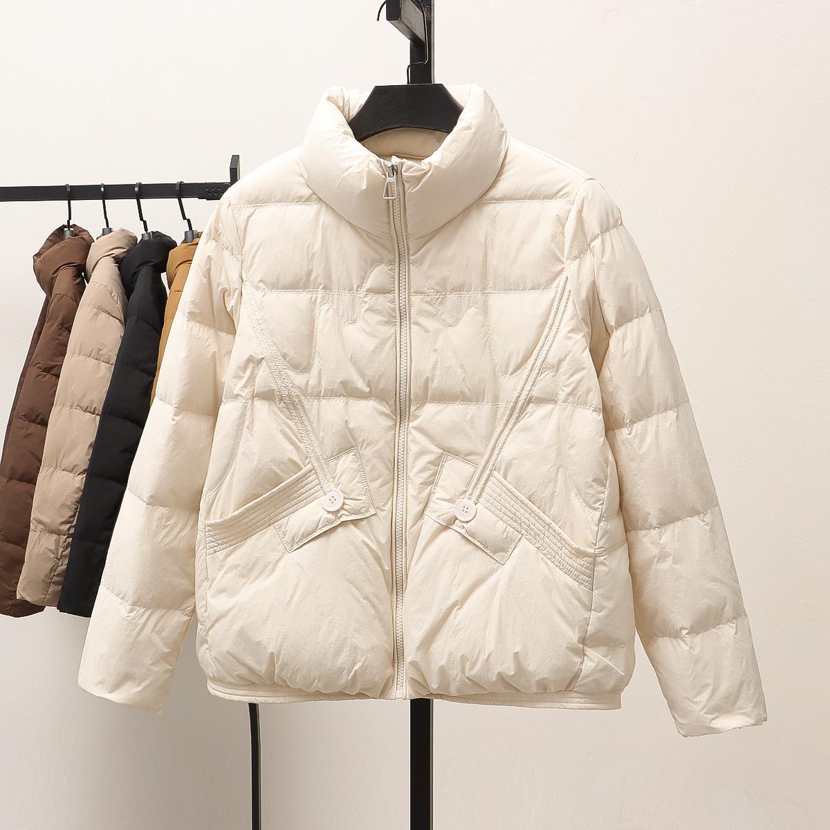 Легкая куртка-пуховик с воротником-стойкой, женская короткая, 2024, новая корейская версия, белая утиная пуховая куртка, устойчивая к холоду, в иностранном стиле, маленькая теплая куртка S