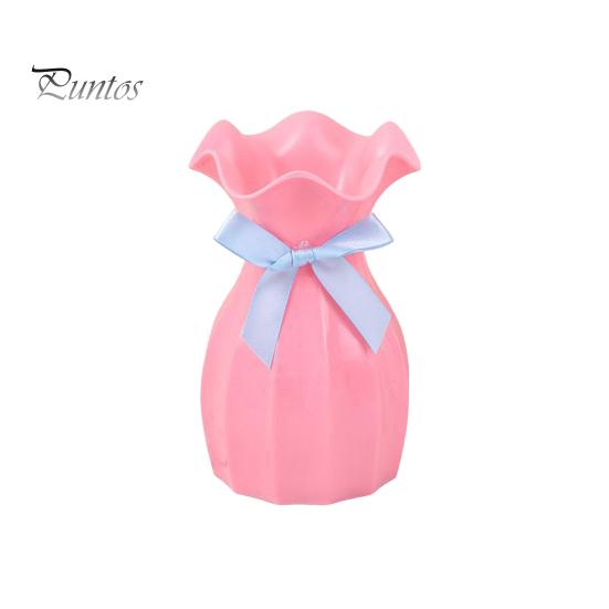 Легкая пластиковая ваза, небьющаяся ваза для цветов с гофрированным горлом, держатель для сухоцветов с бантом для спальни, гостиной, стола, декора