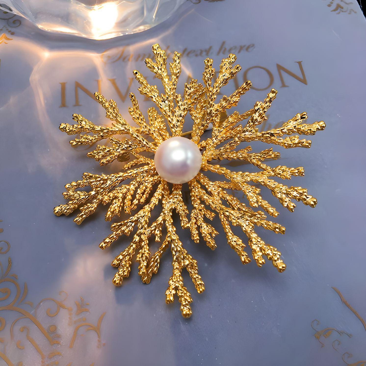 Легкая роскошная ретро-брошь в виде снежинки, элегантная жемчужная брошь, элегантный дизайн, аксессуары для пальто
