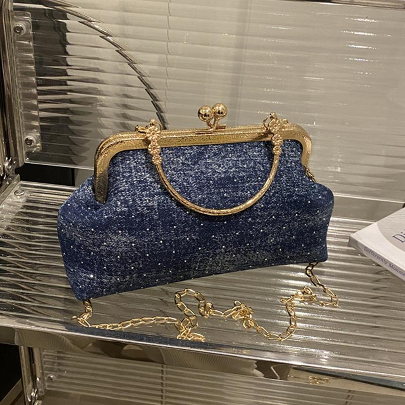 Легкая роскошная ретро-сумка из металла для женщин, лето 2025, новая модная универсальная сумка через плечо с заклепками, сумка-мессенджер на цепочке темно-синий