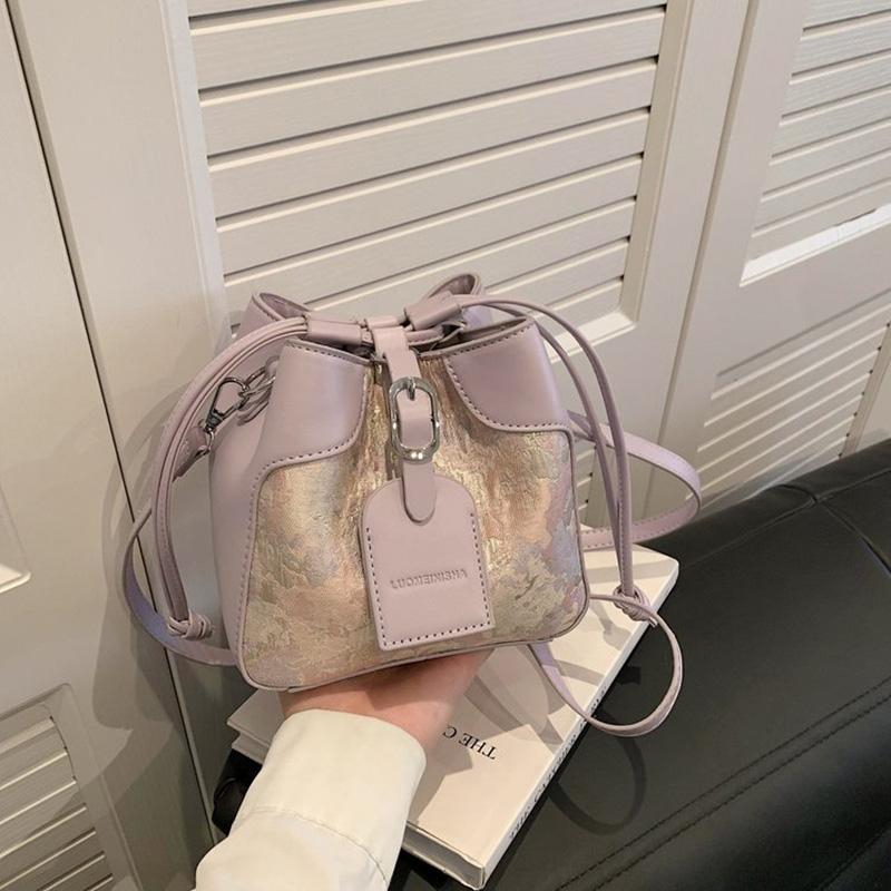 Легкая роскошная сумка через плечо, розовая, модная, летняя, новая, из искусственной кожи, фиолетовая, большая вместительная сумка-ведро с завязками, сумка через плечо для поездок на работу