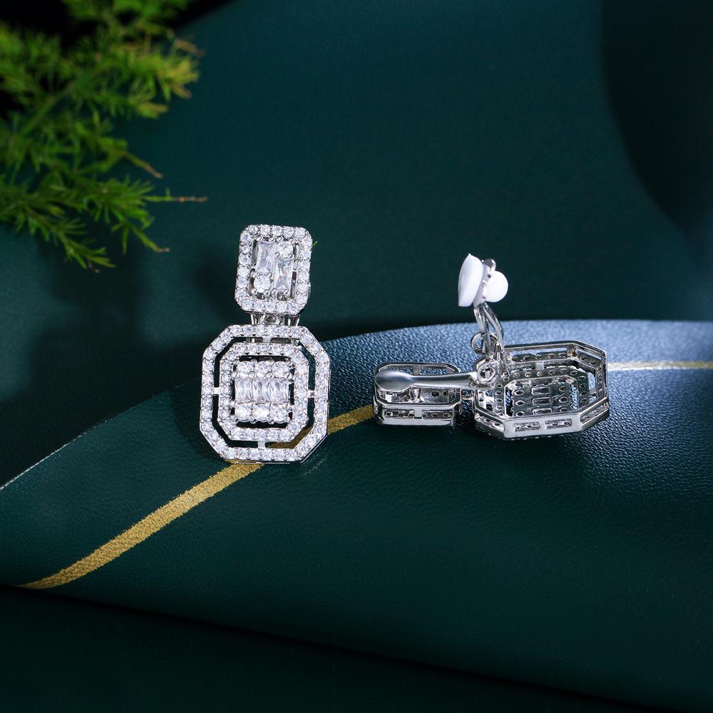 Легкая роскошь Ручная работа Инкрустация цирконами Дизайн клипсы для ушей Полые геометрические Серьги с полным бриллиантом
