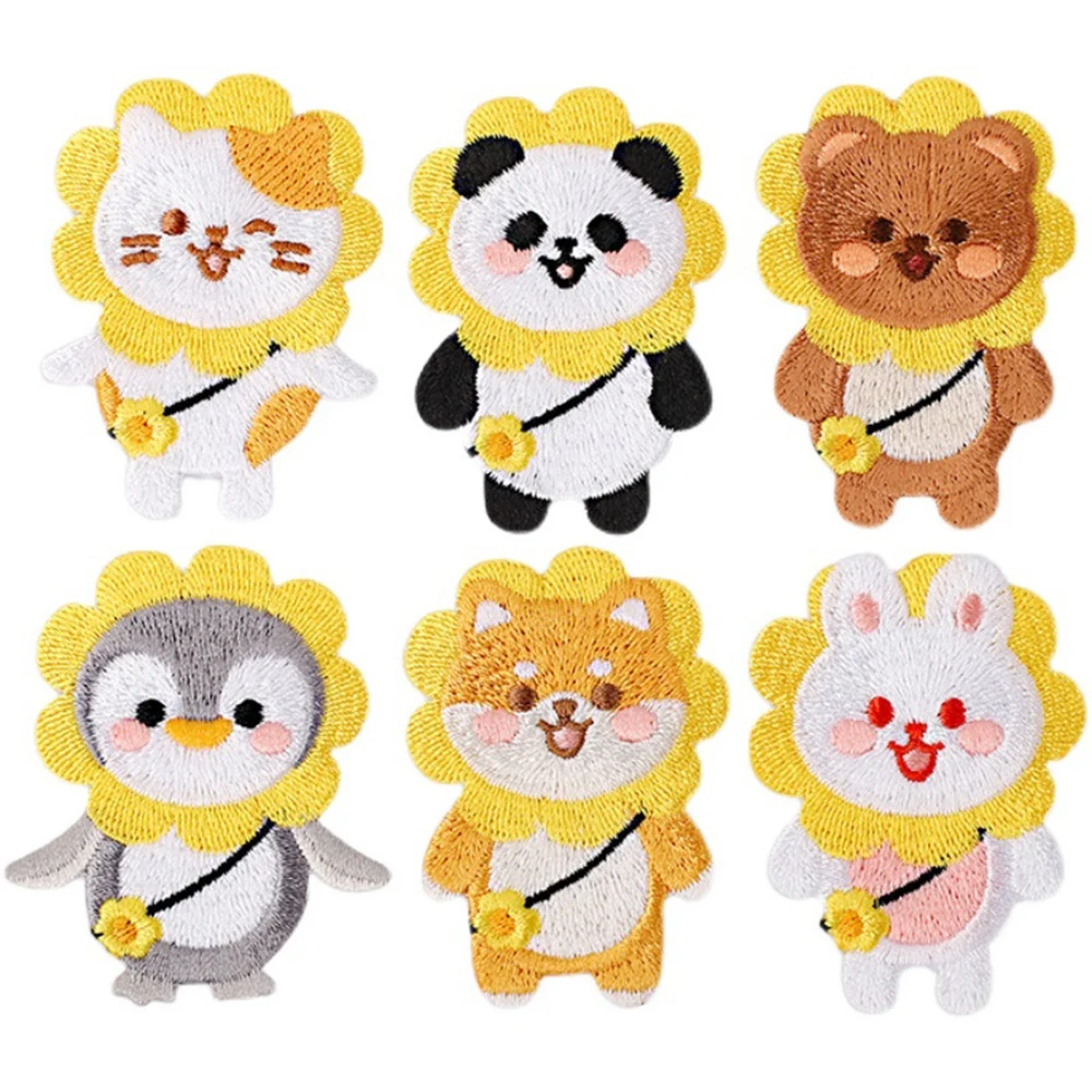 1 Pieces of Embroidered Panda Cat Shiba Patches Iron On Patch Accessories For Coat Jeans Dress Cute Cartoon Patches