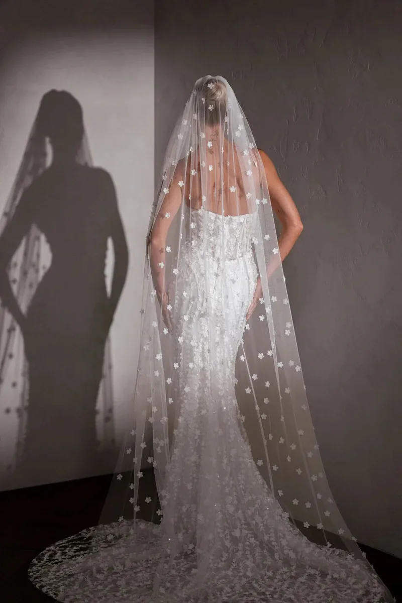 Gorgeous Wedding Veils Flower Appliqued Edge Polycyclic Lace Cathedral Veil 3M 4M 5M With Comb Bridal Veil Customized