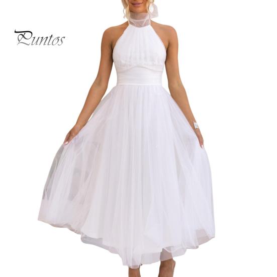 Леди Вечернее платье На шнуровке Высокий воротник Холтер Шея Открытая спина С открытыми плечами Без рукавов Многослойная сетка Подол Сплошной цвет Трапеция Выпускной вечер для подружки невесты XL белый