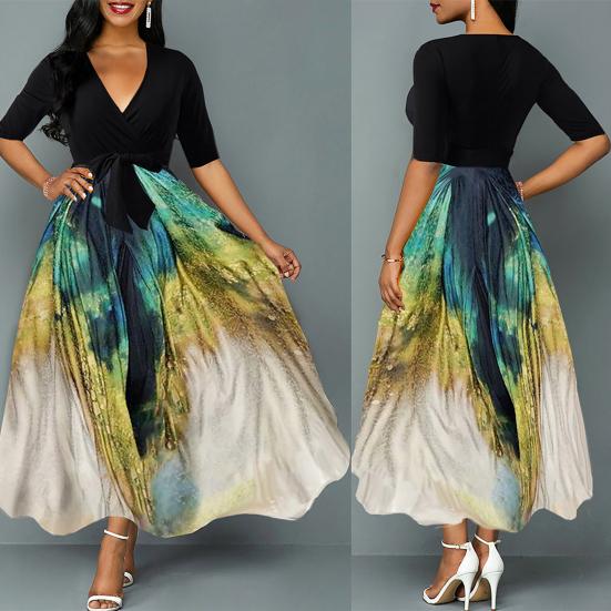 Леди Нижние юбки плюс размер торжественное платье с принтом и v-образным вырезом женское платье с коротким рукавом и большим поясом для свиданий