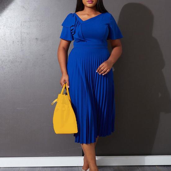 Леди Нижние юбки плюс размер торжественное платье с разрезом на шее и оборками на рукавах, летнее плиссированное платье трапециевидной формы для свадьбы M синий