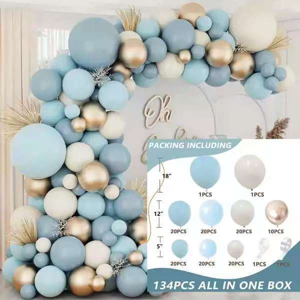 Ледяной шелк Дымчато-голубой Мака Голубой Песочно-белый Металлический Золотой Набор венков из воздушных шаров Крещение ребенка Вечеринка по случаю дня рождения ребенка Украшение Set as shown