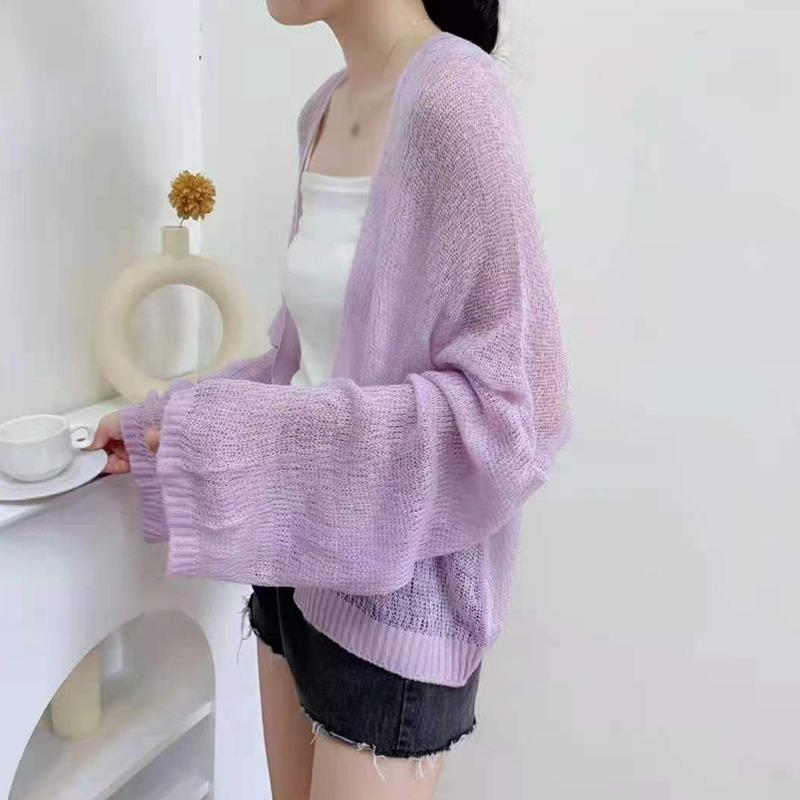 Ледяной шелк, солнцезащитный вязаный кардиган, рубашка с кондиционером, женская летняя тонкая короткая рубашка с ленивым лобовым стеклом, шаль One Size