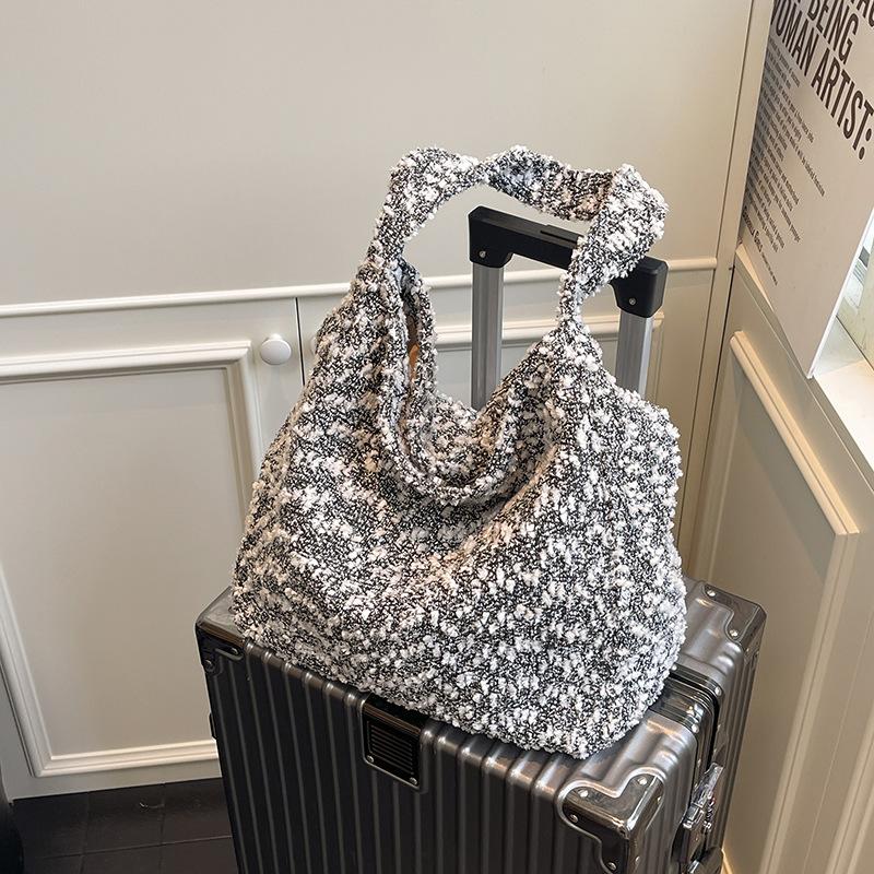 Ленивая сумка-ведро на осень и зиму, новая повседневная плюшевая сумка под мышкой, большая вместительная сумка на плечо для женщин