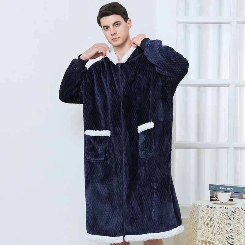 Ленивый халат на молнии с капюшоном, домашняя одежда, новая зимняя фланелевая одежда для отдыха для пар, одеяло для ТВ, ночное белье из кораллового флиса, халат, платье
