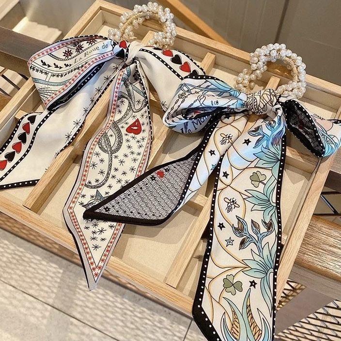 Лента для волос с французским жемчугом, Интернет-знаменитость, шелковый шарф, повязка для волос, повязка на голову, женская темпераментная лента для волос, корейская резинка для волос, резинка для волос