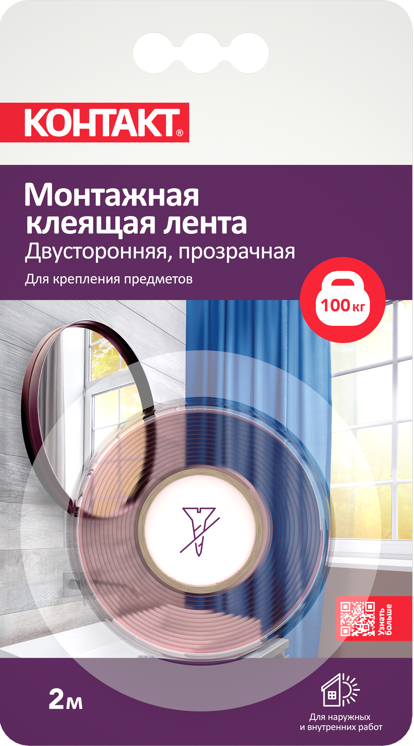Лента монтажная клеящая КОНТАКТ ДОМ двусторонняя 19ммх2м