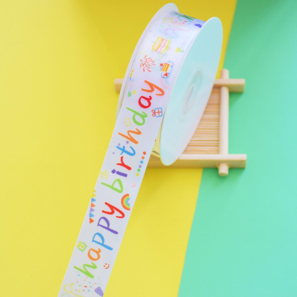 Лента с мультяшным рисунком на день рождения длиной 100 ярдов для торта и детской подарочной коробки