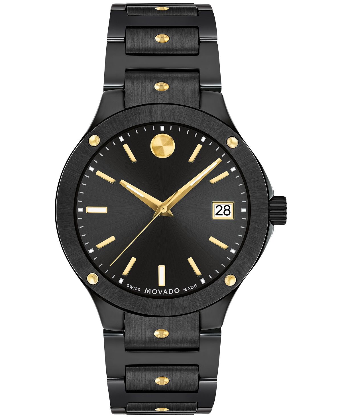 Женские швейцарские кварцевые черные керамические желтые часы-браслет с физическим осаждением из паровой фазы, 33 мм Movado