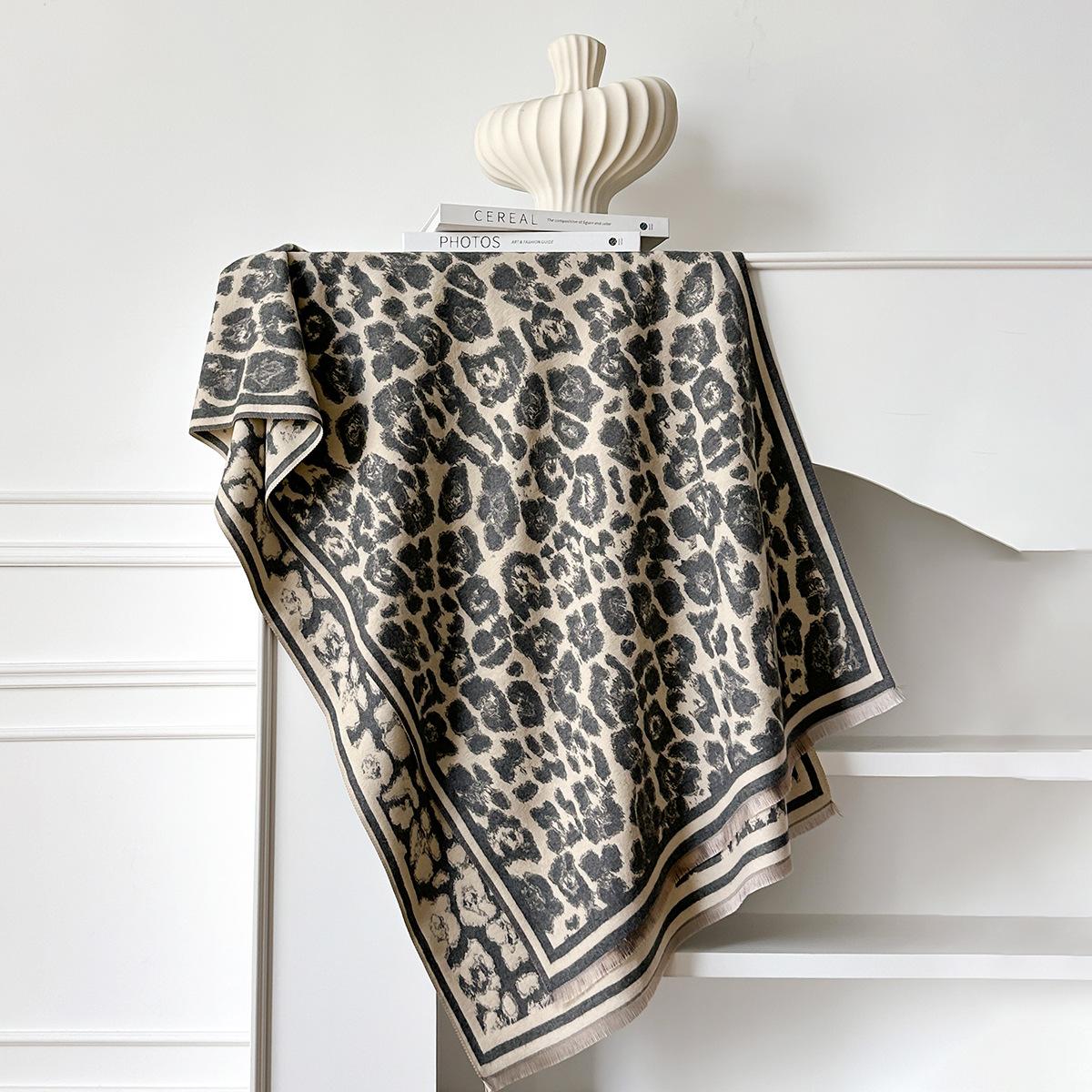 Леопардовый принт корейская версия утолщенная имитация кашемира печатная шаль универсальный теплый шарф 185*65 серый