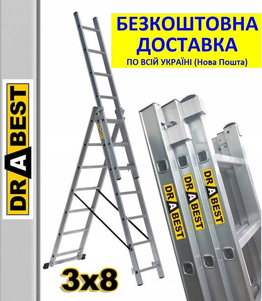 Лестница Drabest Basic 3х8 ступ 3-х секционная алюминиевая универсальная раскладная Польша