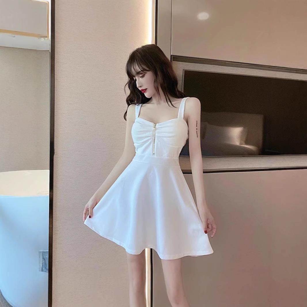 Летнее А-силуэтное платье на бретелях-спагетти с оборками и молнией XXL белый