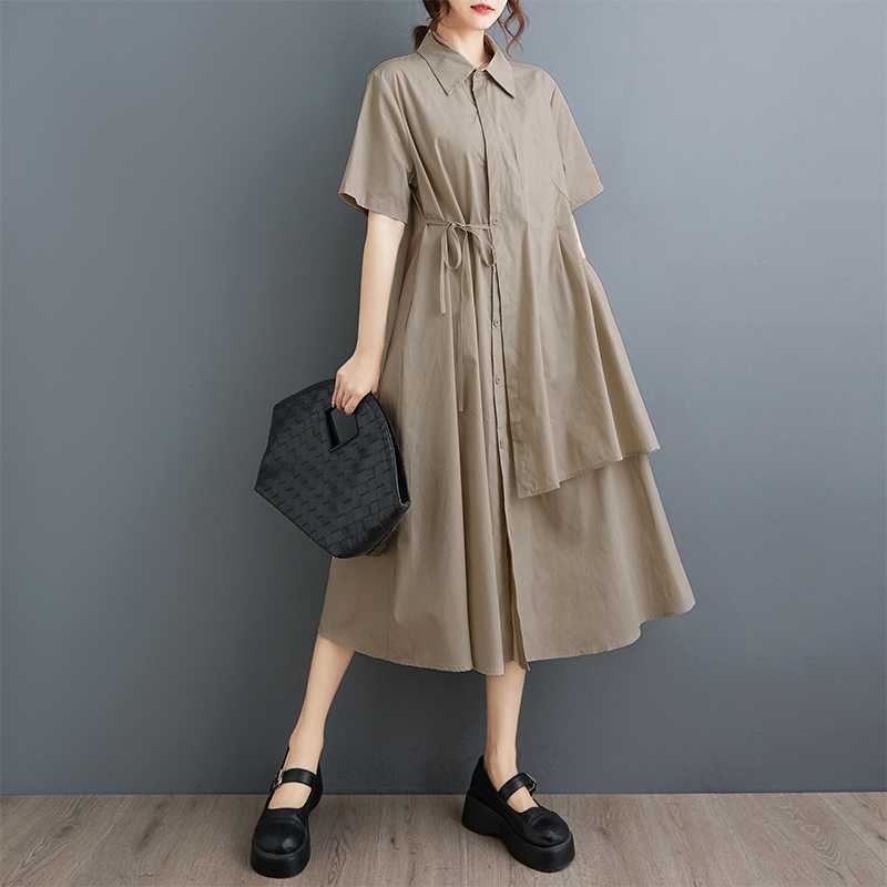 Летнее Свободное Платье Плюс Сайз в Стиле Пэчворк, Повседневное, с Коротким Рукавом one size хаки