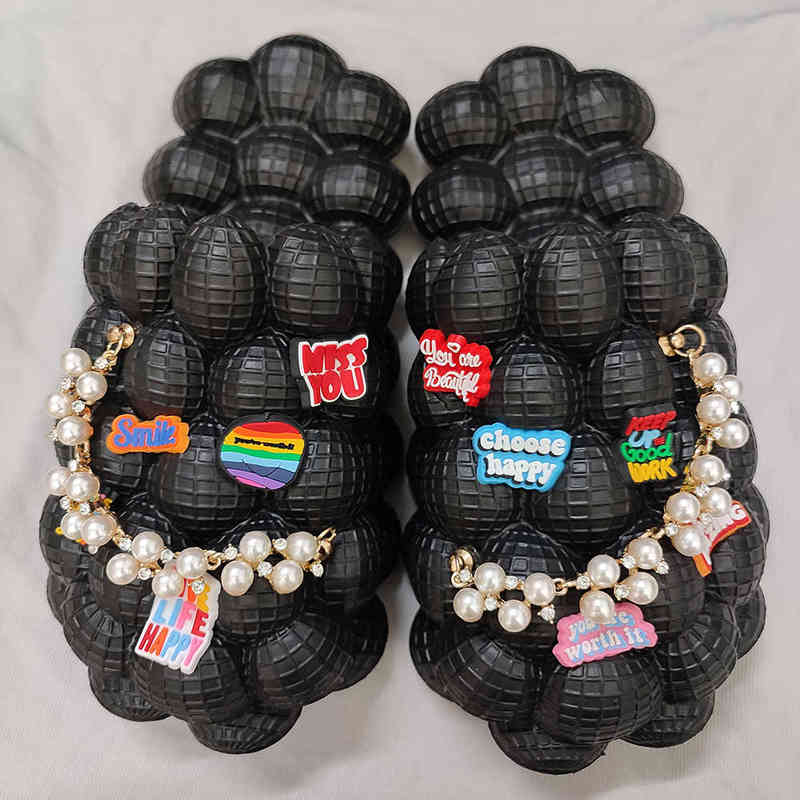 Slipper Bubble Slides with Charms for Women Fashion Pearl Chain Inspirational Quotes Sandals 2022 Summer House Slippers Platform Shoes 0729, Free size