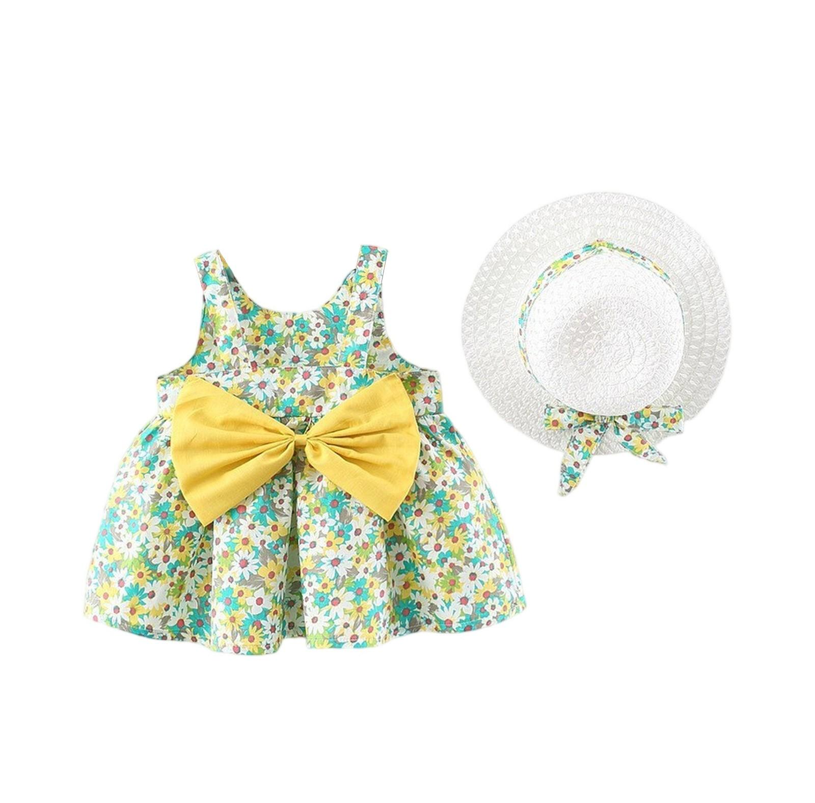 Летнее детское платье без рукавов и комплект шапочки - милый наряд принцессы с цветочным принтом 90 жёлтый