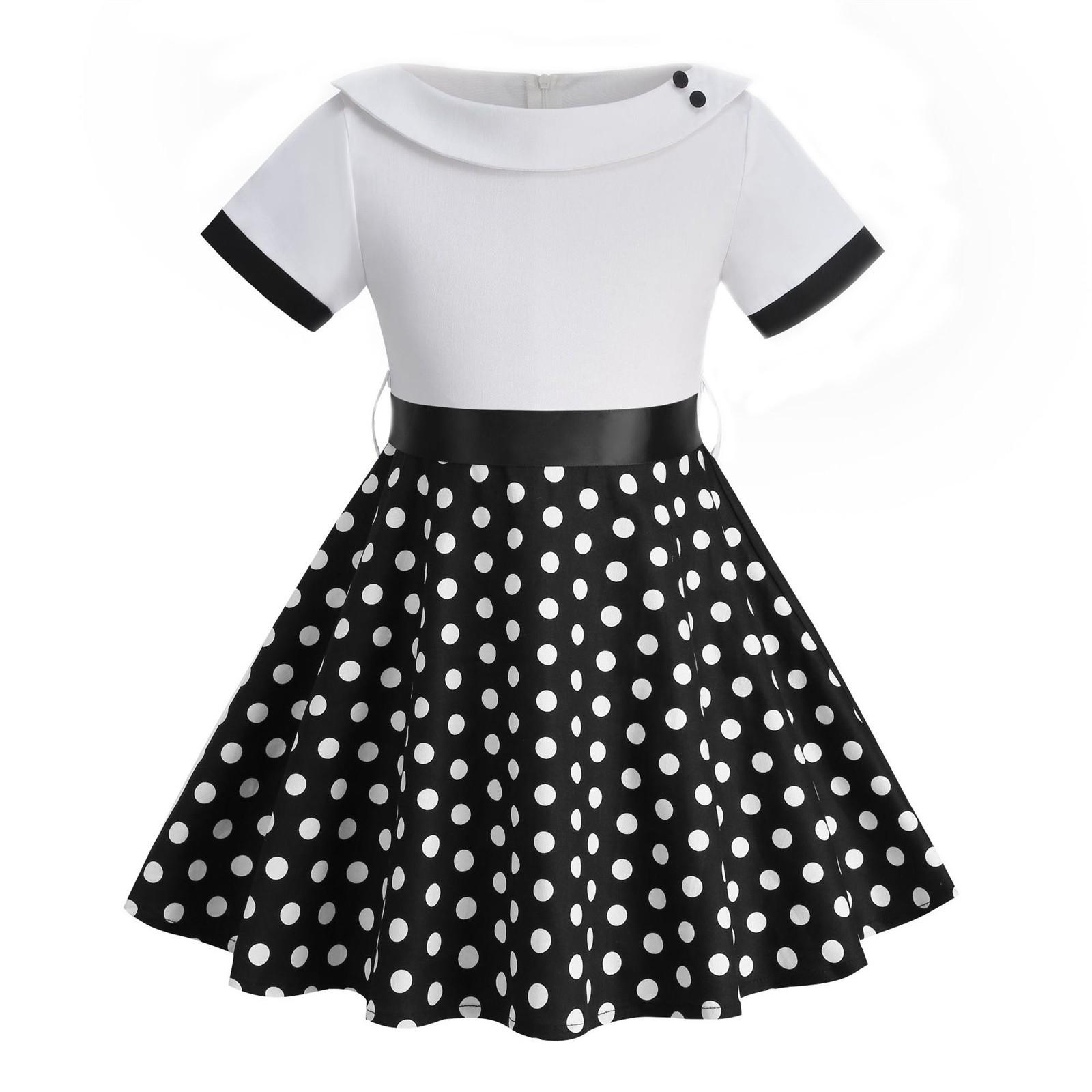 Летнее детское платье с поясом, лоскутное, в горошек, ретро, платье принцессы для девочек 110 белый