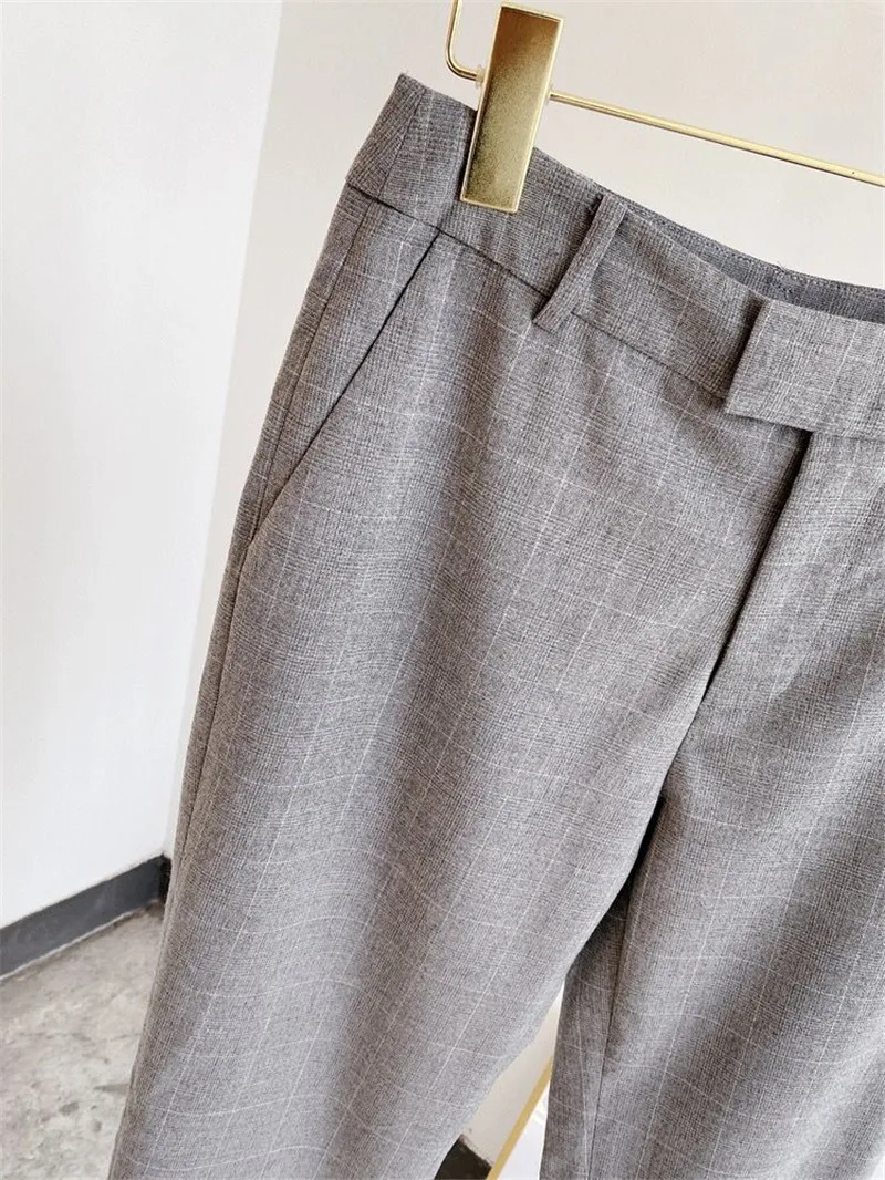 2021 WOMEN Fashion Pants Fashion loose gray plaid long trousers twisted seam with pockets