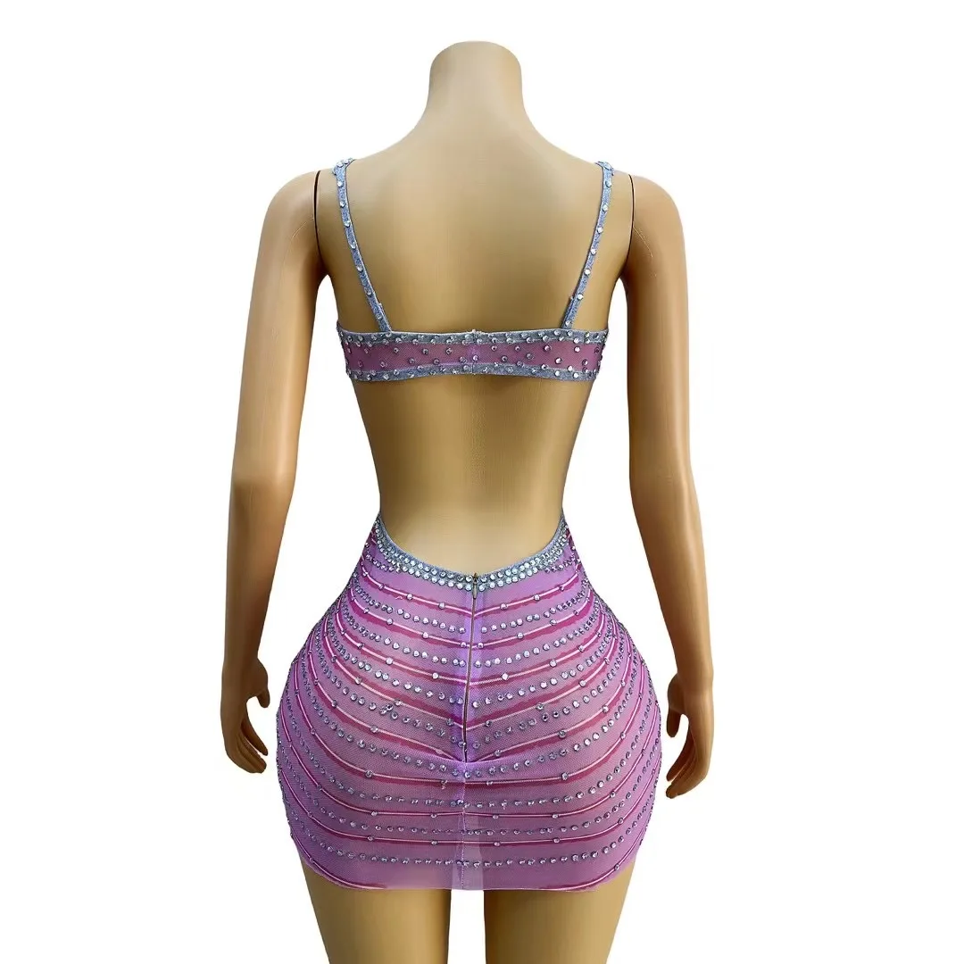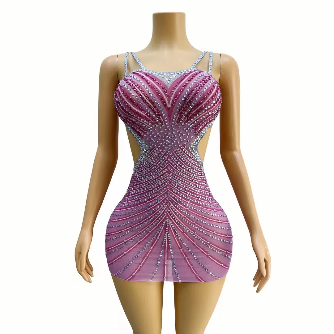 Летнее женское вечернее платье с открытой спиной, праздничное платье на день рождения, одежда для ночного клуба, одежда для шоу, сексуальное блестящее короткое платье, модель C083