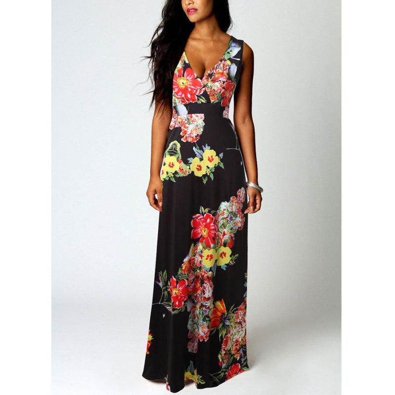Летнее женское модное платье с принтом, сексуальное платье без рукавов с v-образным вырезом, юбка с цветочным принтом и поясом