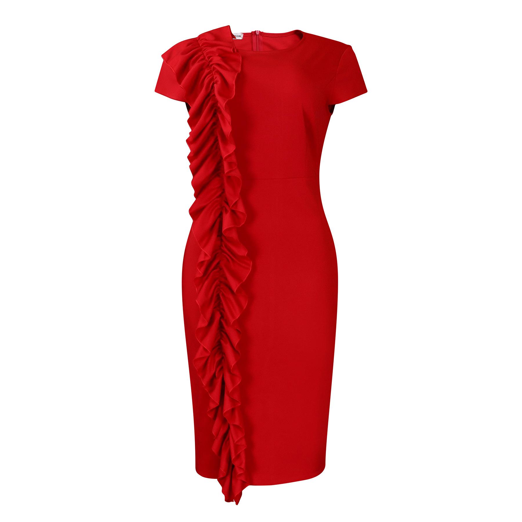Летнее женское платье больших размеров, модное темпераментное элегантное платье с оборками, бедра, профессиональные платья OL 3XL красный