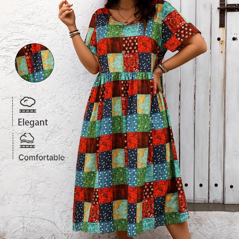 Летнее женское платье свободного кроя с круглым вырезом и принтом больших размеров XL красный